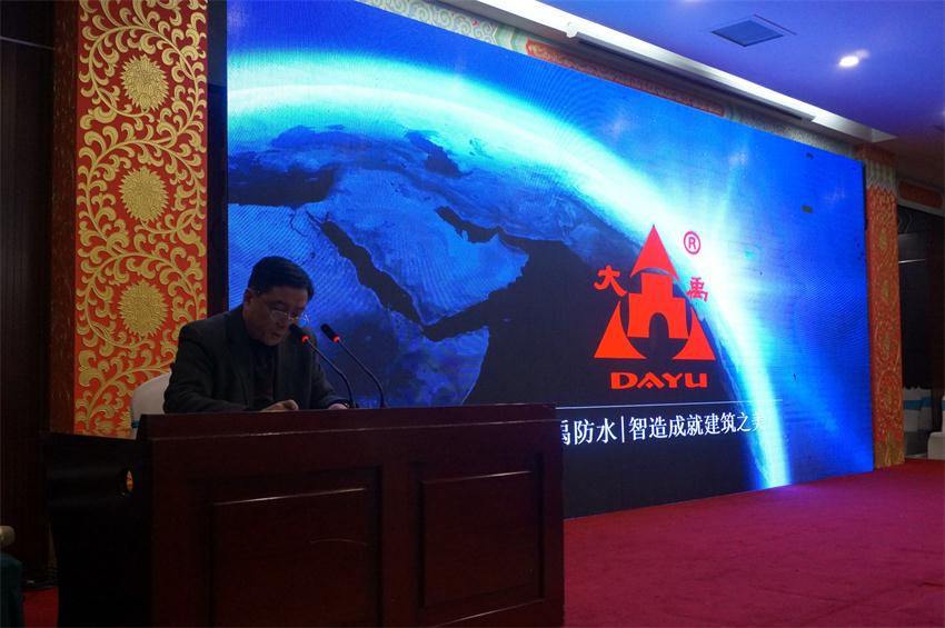 議題之二是中國十大防水品牌企業(yè)遼寧大禹集團,為本次盛會帶來了防水新技術。圖為遼寧大禹集團銷售副總經理王健到會祝賀。