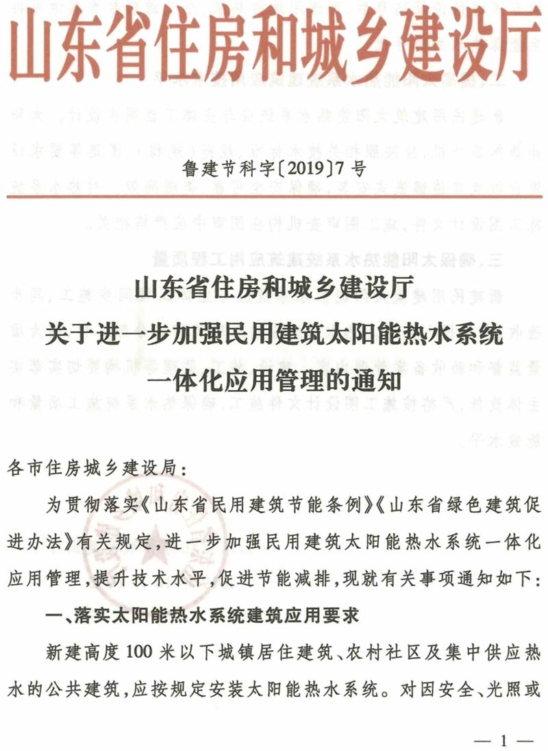 關(guān)于進一步加強民用建筑太陽能熱水系統(tǒng)一體化應(yīng)用管理的通知
